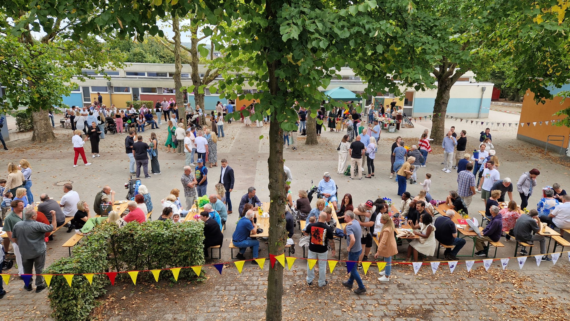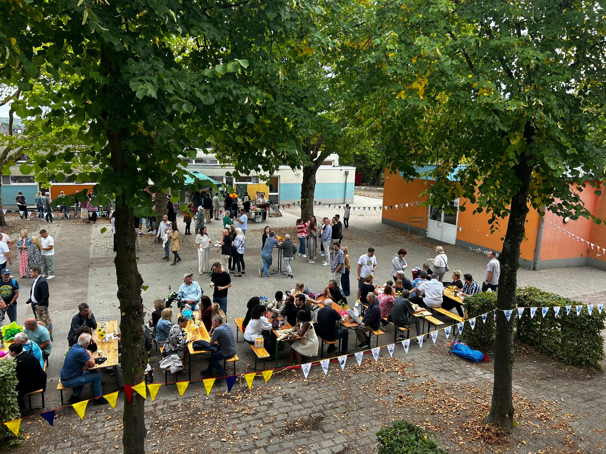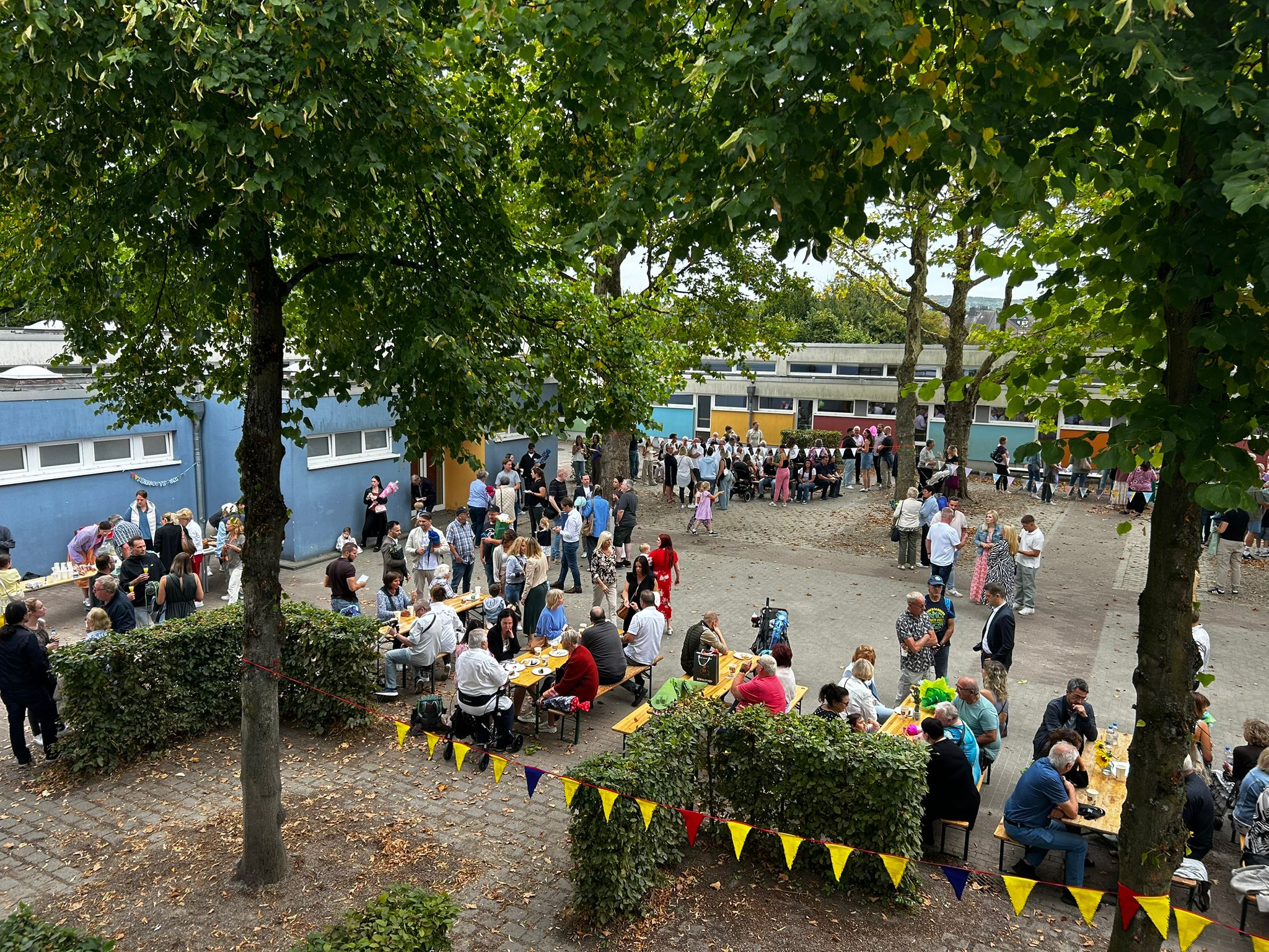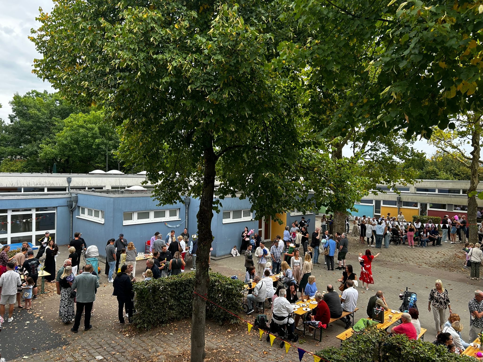 Währenddessen konnten die Eltern auf dem Schulhof bei Kaffee und Kuchen ins Gespräch kommen. Die Kuchen wurden großzügig von Eltern der Regenbogenschule gespendet. Für den Förderverein stand eine Spendenbox bereit, in die viele Gäste einen Beitrag gaben.
